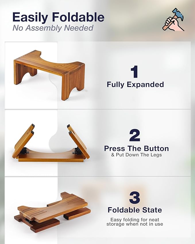 Crafted from durable natural wood, this toilet stool is designed to enhance your bathroom posture and support a healthier lifestyle. With a clinically recommended height of 7 inches, it encourages a natural squatting position that can reduce strain, ease constipation, and promote more complete bowel movements.